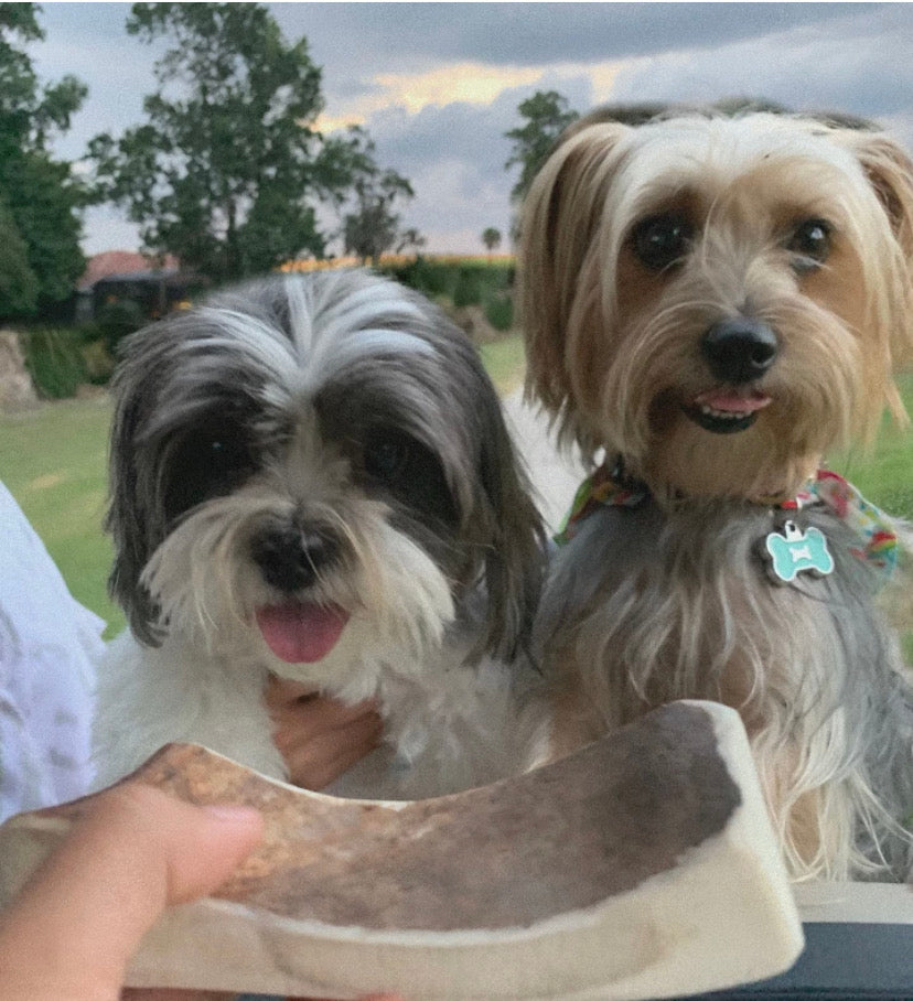 Moose antlers are shed at the end of mating season every year so the male moose can save energy for the coming winter. These antlers are a bit softer than other antlers and loaded with marrow, making them ideal for softer chewers.